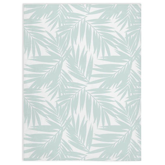 Coconut Palm Leaves Light Teal Minky Baby Blanket