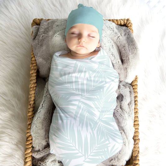 Coconut Palm Leaves Light Teal Swaddle Blanket
