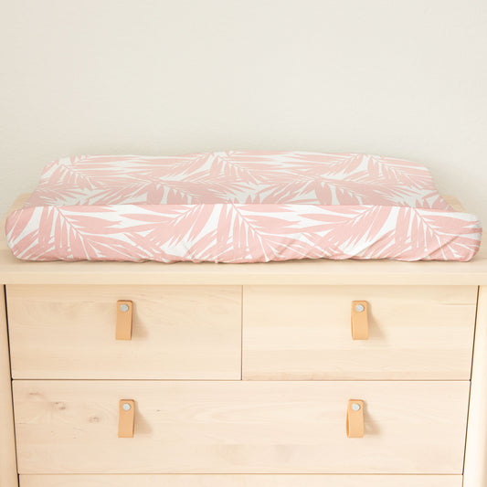 Coconut Palm Leaves Light Coral Baby Changing Pad Cover