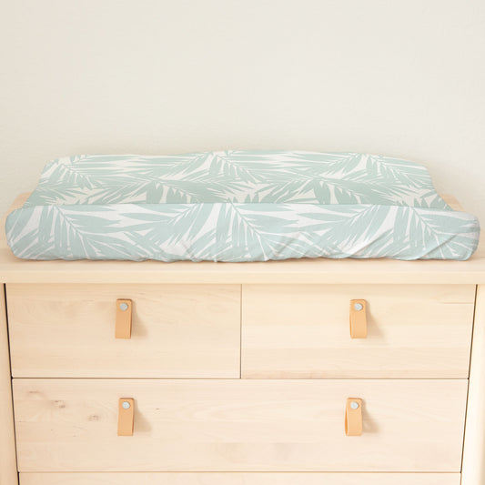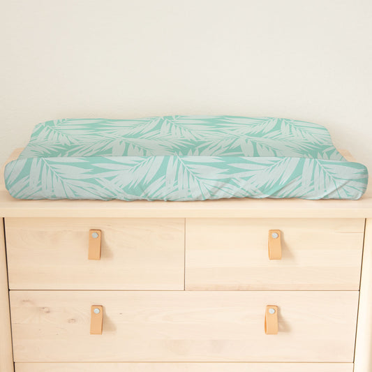 Coconut Palm Leaves Light Teal Baby Changing Pad Cover